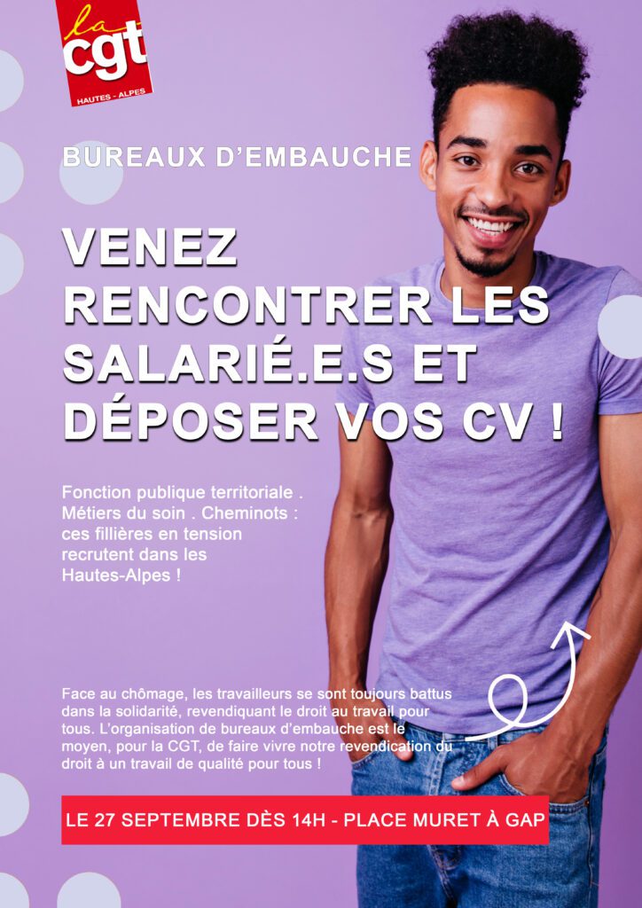 « Nos structures ont besoin de vous ! » C’est sous ce slogan que les militants de la CGT accueilleront les habitants du département, mercredi 27 septembre dès 14H pour les informer sur les métiers de leurs entreprises et administrations et les aider dans leurs démarches de candidatures.